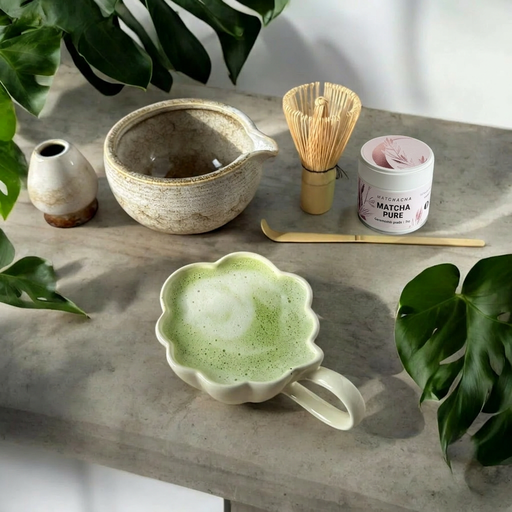 Matcha sæt inkl. rustik skål med hældetud (30g Matcha og al tilbehør)