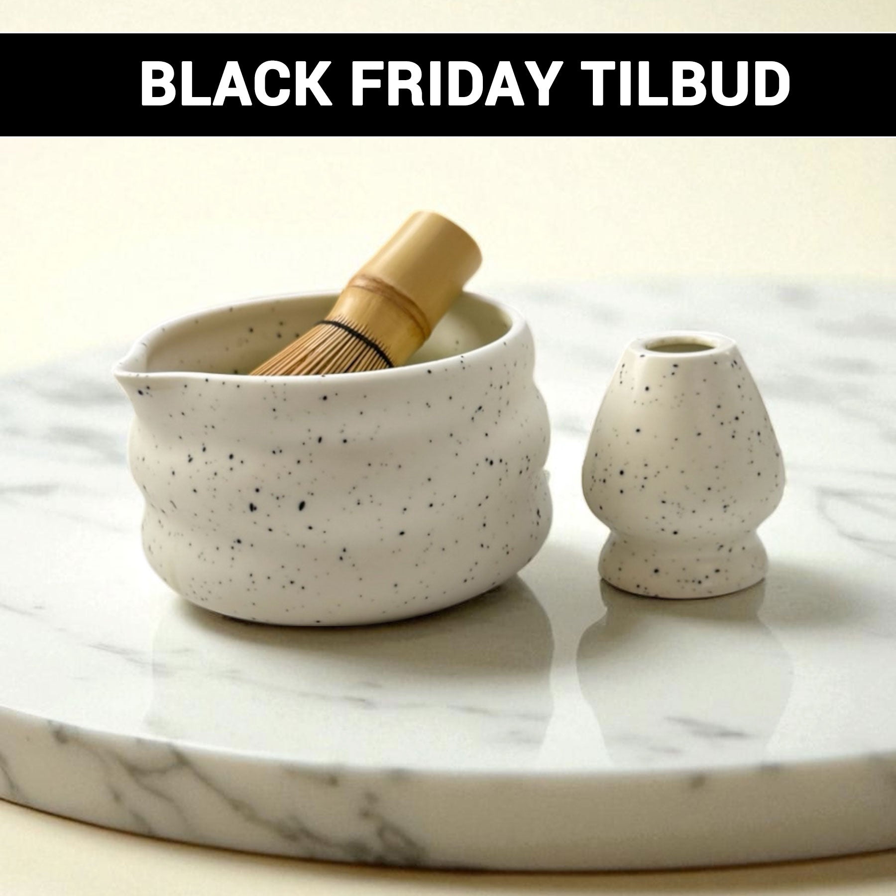 Et enkelt og elegant sæt bestående af en matcha-skål med hældetud og en holder til dit chasen (matcha-piskeris). Begge dele er fremstillet i smukt, lyst keramik med et naturligt, plettet udtryk.